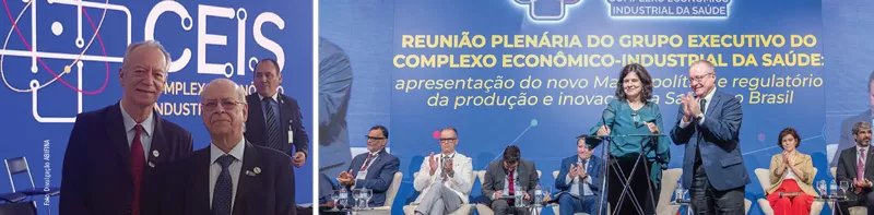 O presidente do Conselho Administrativo da ABIFINA, Marcus Soalheiro, e o presidente executivo, Antonio Carlos Bezerra, estiveram no lançamento da Estratégia Nacional para o Desenvolvimento do Complexo Econômico e Industrial da Saúde, que aconteceu em setembro, em Brasília. Dirigentes de empresas associadas à ABIFINA também participaram. A estratégia dá base para a nova política industrial brasileira, tema da Matéria Política desta edição (ver na pág. 12).